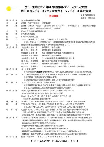 ソニー生命カップ第47回全国レディーステニス大会 朝日東海レディーステニス大会クイーンレディース選出大会