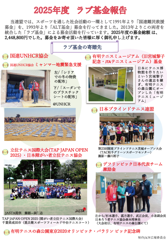 2025年度「ラブ基金」報告 2026 3/04 静岡県支部からは、皆さまからお預かりした募金52,300円を本部へ送金しております。 PDFは、下記より参照できます。 2025年ラブ基金(PDF) 過去のラブ基金報告 年度 静岡県支部からの募金 ラブ基金報告2024年49,294円報告 お知らせ