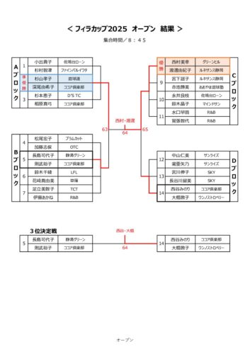 2025年度 県主催 フィラカップ2025 「オープン」「シニア135」 2025 11/08 結果・写真をアップしました 開催日 2025年10月23日(木) 予備日 2025年11月7日(金) 締切日 2025年9月20日(土) 会場 静岡県草薙総合運動場庭球場 写真 写真を見る 募集要項 ダウンロード 当日要項 ダウンロード エントリーリスト ダウンロード ドロー ダウンロード 結果 ダウンロード