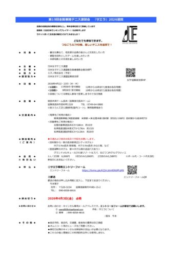 第19回全国親睦テニス講習会「サエラ」2026(滋賀県)