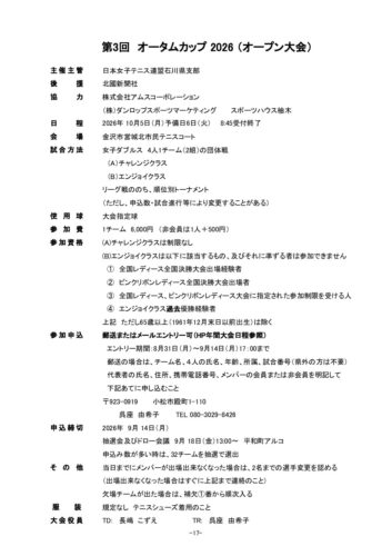 第3回 オータムカップ2026(石川県)