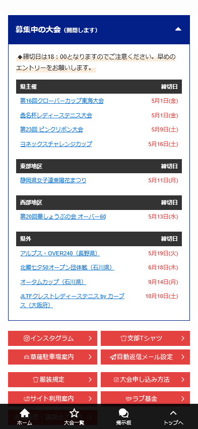 最新大会情報リスト