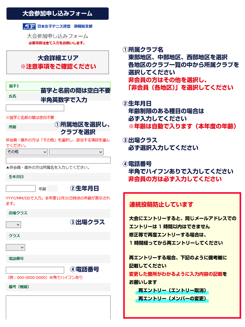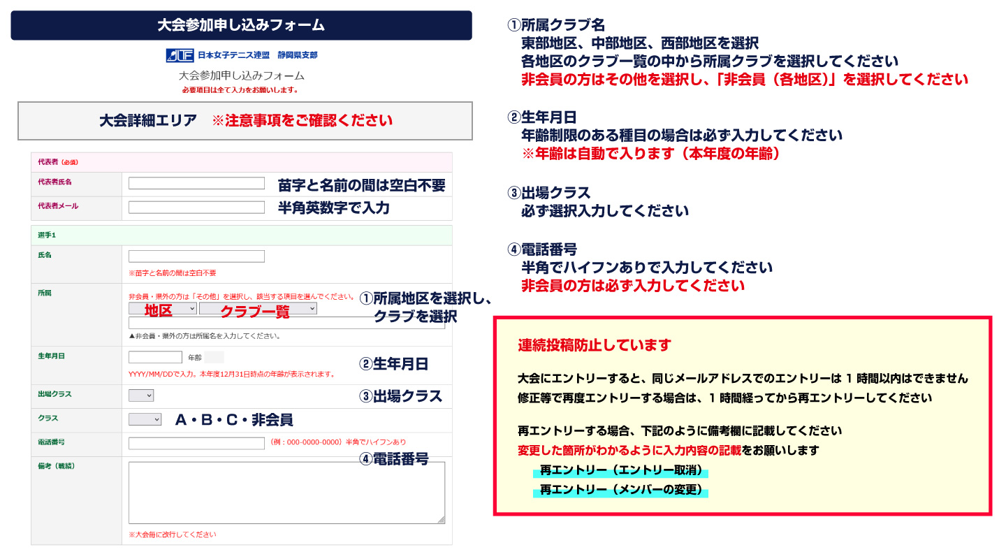 大会によっては、フォームが分かれている場合がありますのでご注意ください。